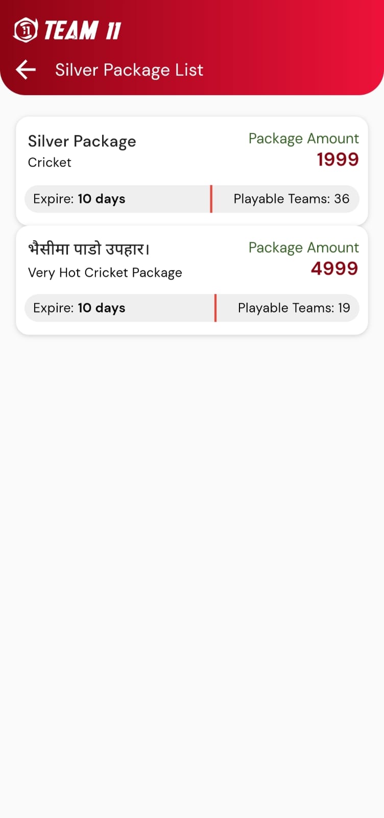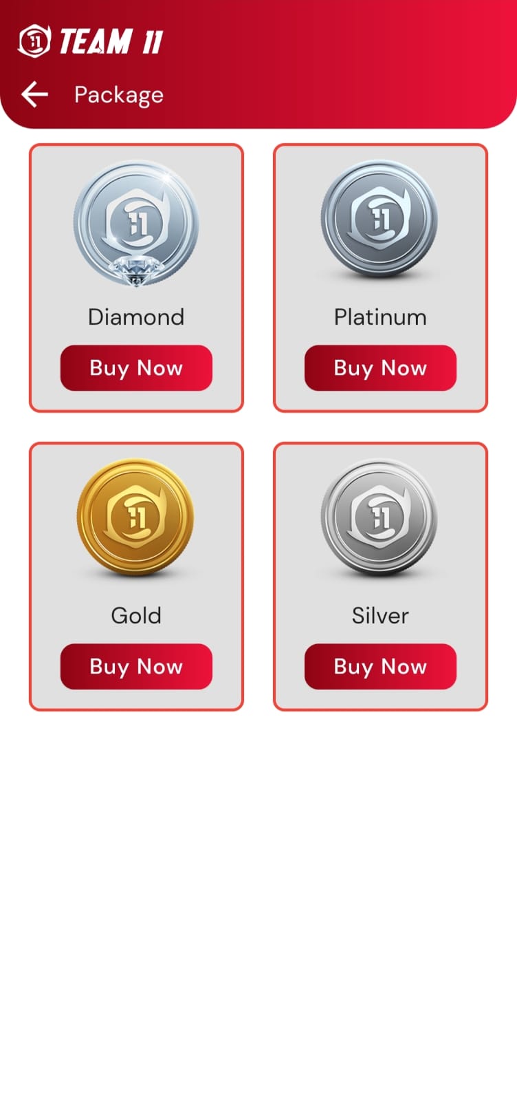 Team11 offers a range of premium packages tailored to suit different preferences. You'll encounter four enticing options: Diamond, Platinum, Gold, and Silver. Each package comes with its own set of exclusive advantages, so take a moment to choose the one that aligns with your gaming style.