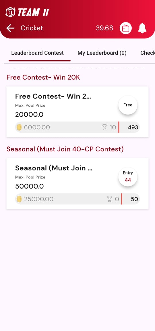 - यदि तपाईंले Seasonal Leaderboard मा join गर्नुभएको छ भने, त्यहि contests मा सामेल हुनुहोस्। उदाहरणको रूपमा, यदि seasonal leaderboard challenge 44 C.P. को contest मा चलिरहेको छ भने, तपाईंले Cricket section मा दैनिक NPL म्याचहरूमा 40 C.P. or त्यो भन्दा बढी C.P. को contest मा join गर्नु पर्नेछ।